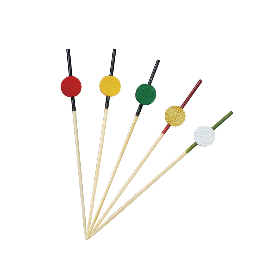 かんざしをイメージして作った『かんざし串』 パッと目を引くカラーが料理を華やかに演出してくれます。 パーティーピックとして色を揃えて使うとかっこいい印象に。 使いやすい3色がセットになっているので、日常使いやおもてなしに。 径:1.6㎜ 長さ:7.5cm / 9cm / 12cm 入数:50本入 材質:天然竹 仕上げ:ウレタン塗装