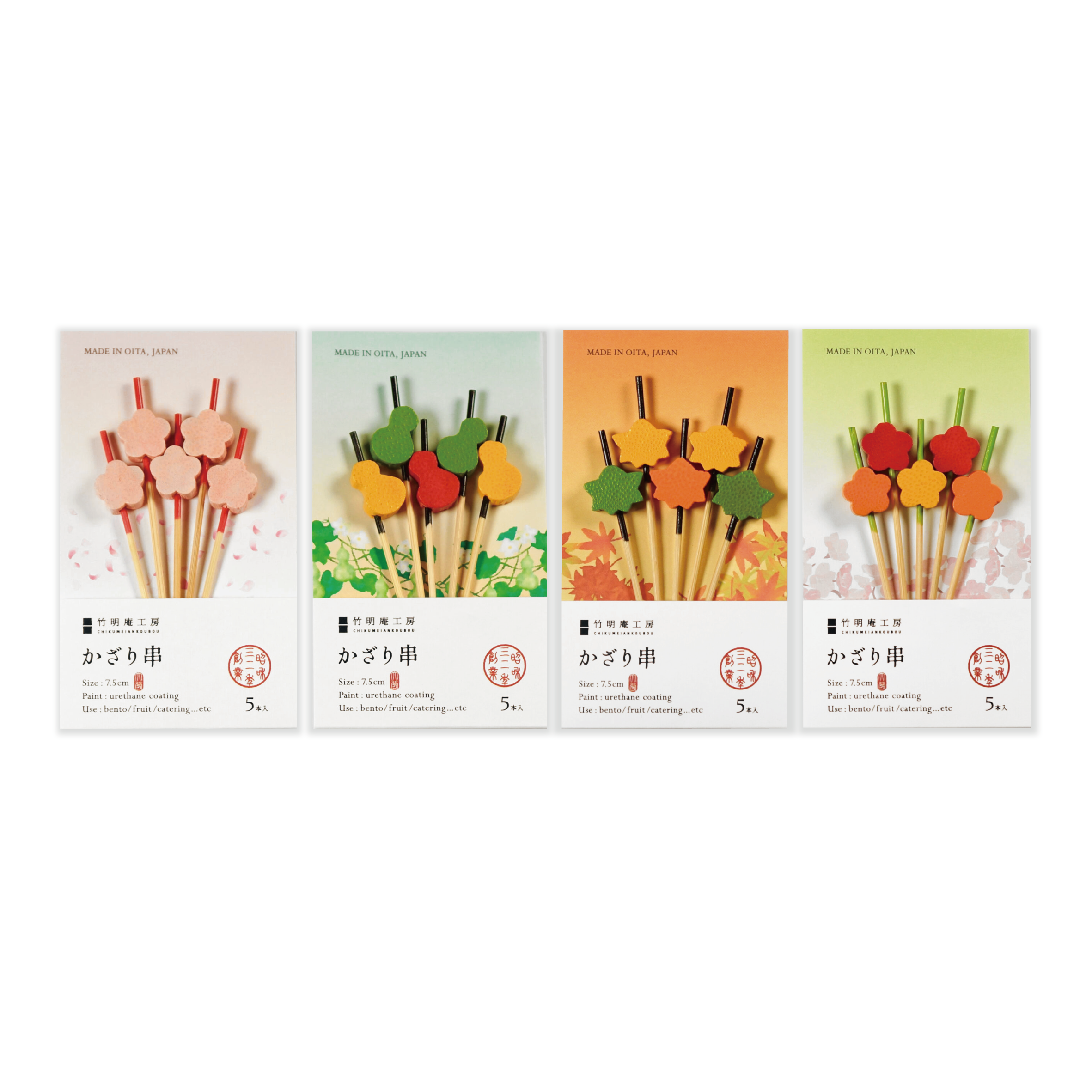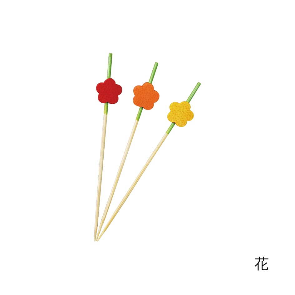 人気のかざり串の5本入りです お弁当にぴったりのサイズ 行楽やお弁当、フルーツにご利用ください。 長さ:7.5cm 入数:10本入 材質:天然竹 仕上げ:ウレタン塗装
