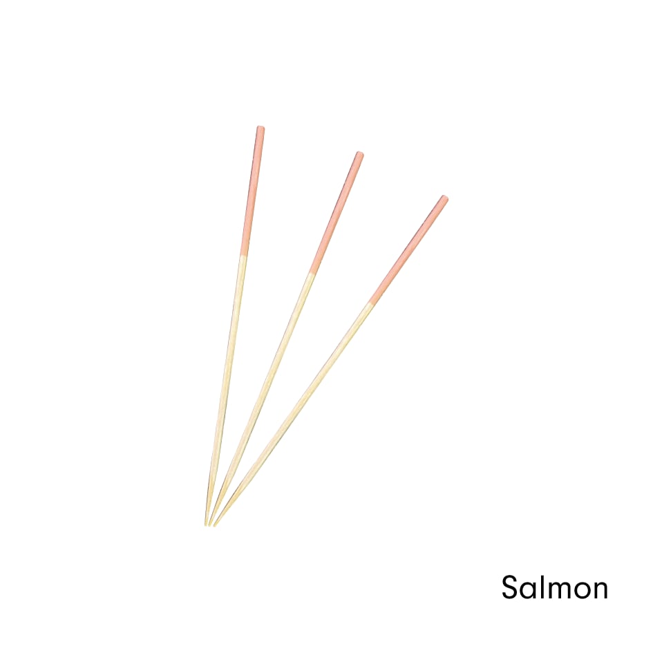 食品に色移りしない安全な塗料を使用した天然竹のフードピックです。 食卓やキッチンで使いやすく、お花見やピクニックなど外出先でも使え、 そのまま保管できるケースとセットになっているので、 様々なシーンに”おとも”できます。 サイズ : φ1.6mm×75mm 材質:天然竹 仕上げ:ウレタン塗装 入数:50本入 カラー:6色展開